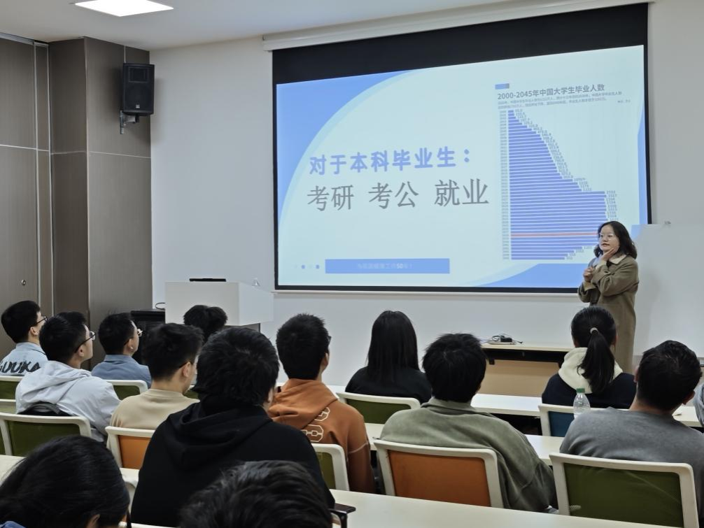 班会上,辅导员结合《2024中国水利发展报告》,通过动态数据图表,深度解析了行业就业形势。随后,播放了在水电站工作校友VCR,生动展现了新一代水利人如何将专业知识应用于工程实践当中,激发学生对行业前景的深度思考。