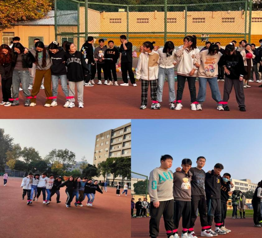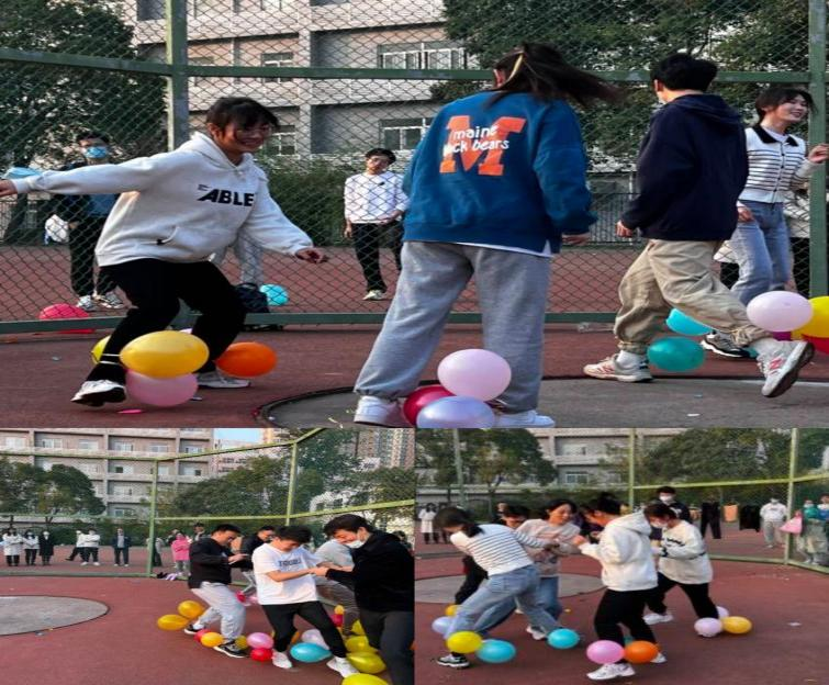 此次趣味运动会不限班级,同学们自由组合,共设置3个项目,分别为“合力运球”、“绑腿跑”、“快乐爆破”。“合力运球”项目2人一组,两人需共同协作用背部运送气球到达指定位置;“绑腿跑”项目5人一组,五人通过捆绑相邻脚踝在跑道上共同前进;“快乐爆破”项目,每个人在规定时间内捏爆别人的气球并保护自己的气球。比赛过程中,同学们不断沟通交流、改善合作方案,为赢得出彩的成绩共同努力,班级同学的加油声此起彼伏,为参赛同学尽情鼓掌呐喊。