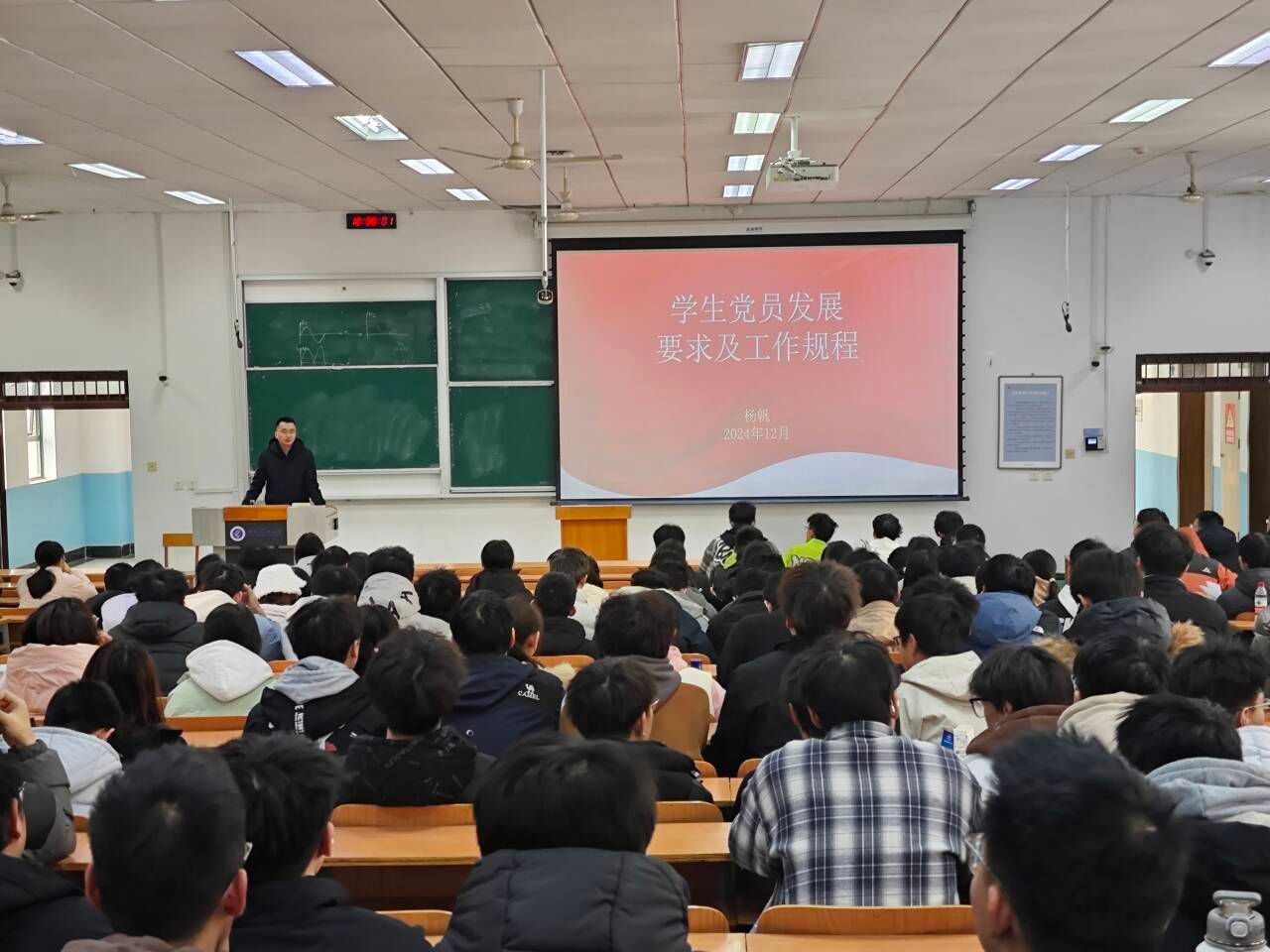为扎实做好党员发展和启蒙教育工作,进一步端正学生入党动机,12月25日,BEAT365官网在曲江校区10-401组织开展2024级本科生院级党课,本次课程由BEAT365官网院长助理、学生工作办公室主任杨帆主讲,题为《学生党员发展要求及工作规程》。