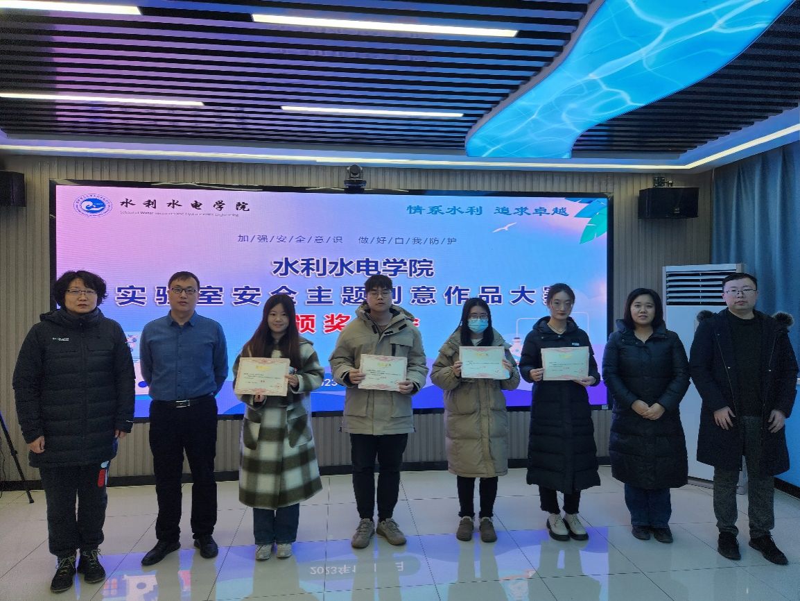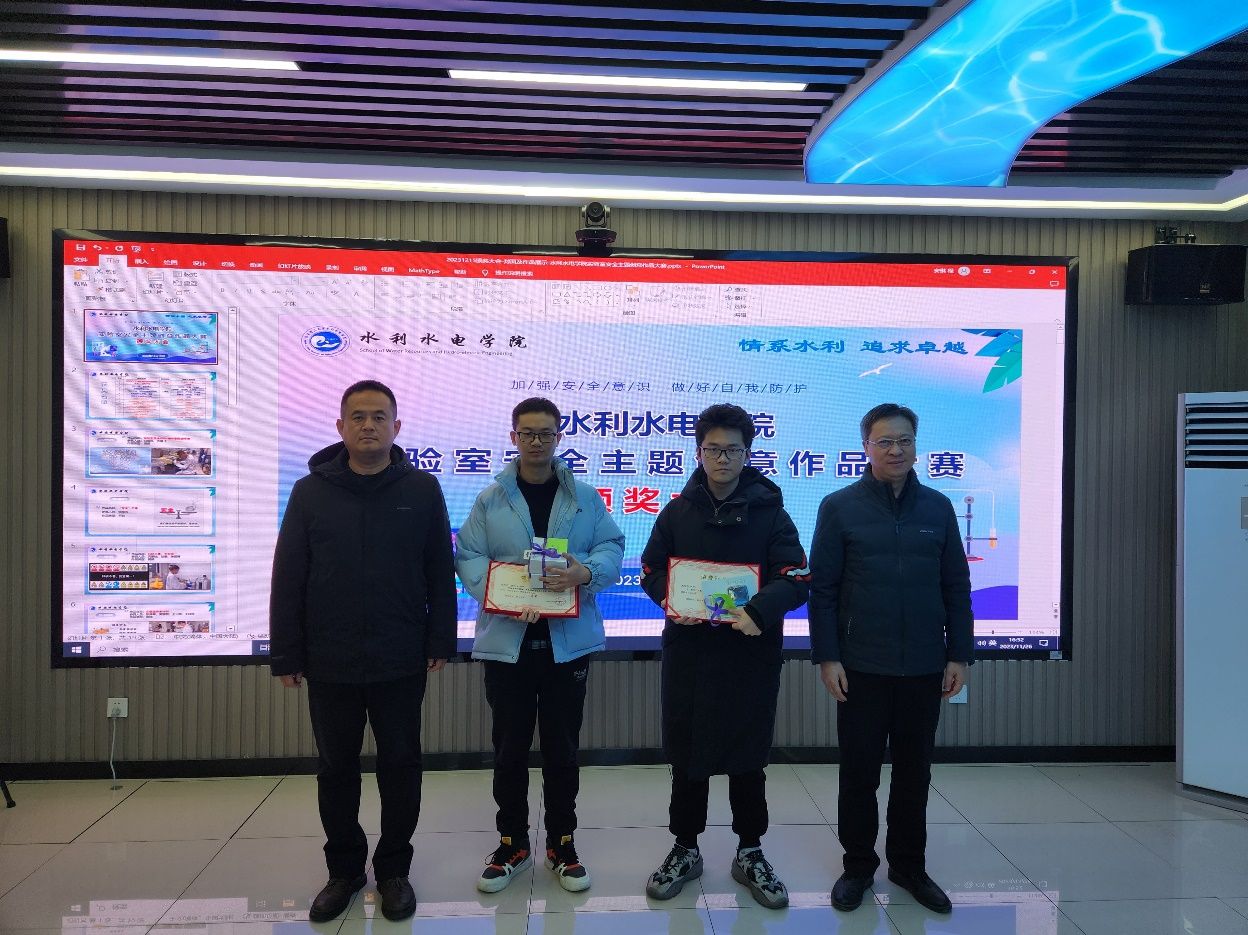 12月15日下午,BEAT365英国官网在教四楼虚拟仿真中心举办了第一届实验室安全主题创意作品大赛颁奖大会。大会特别邀请校保卫处消防科科长宋伟、实验室管理处安全科高昊宇、资产管理处安全专员李鲁,BEAT365英国官网副院长吴罗长、西北旱区生态水利国家重点实验室副主任罗军刚、学工办主任杨帆、农工系主任吴军虎、水力学所副主任张巧玲、水工系副主任宋锦焘、市政系教师代表李晓良作为颁奖嘉宾。大会由实验中心主任高扬主持。