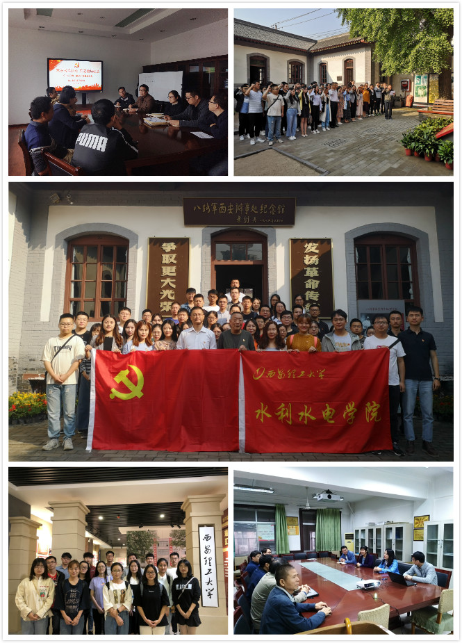 各支部按照学院党委统一部署安排,立足长远结合当前工作重点以学习、参观、讨论会等形式开展主题党日活动。市政系教工支部开展“庆祝新中国成立70周年——科研创新飞跃发展”讨论会,列举新中国成立70周年以来科技领域的飞跃性发展,号召党员同志在科研探索中践行党的规定和要求,承担党员义务及使命。动力系教工支部组织观看电影《一生只为一事来》,并在观影后组织讨论会,以感人的真实故事为榜样,要求党员集体对标,不忘教育初心,勇担育人使命,弘扬高尚师德,做新时代党和人民的好老师。学工办支部联合博士生党支部和硕士生党支部组织参观八路军办事处,以八办为“红色桥梁”让老一辈无产阶级革命家的奉献精神和革命热情烙印在每一位党员的心中。水力学教工支部、行政支部和各学生党支部组织参观校史馆,进一步增强党员的归属感、荣誉感、使命感,引导学生牢记学校发展历程,继承和发扬西理工精神。