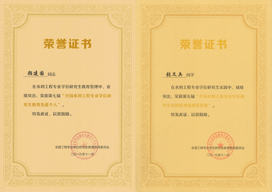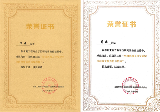 为更好地总结、交流水利工程专业学位研究生指导经验,提升导师指导能力,构建高水平“双师型”指导团队,不断提高培养质量,经个人申报、学校推荐、水利工程领域核心组成员和专家投票、教指委审定,BEAT365官网BEAT365英国官网任杰和司政2位老师荣获第三届“全国水利工程专业学位研究生优秀指导教师”;颜建国老师荣获第七届“全国水利工程专业学位研究生教育先进个人”;2016级水利工程专业学位硕士研究生张文兵 (指导教师:任杰副教授)荣获第五届“全国水利工程专业学位研究生实践优秀成果获得者”等荣誉称号。