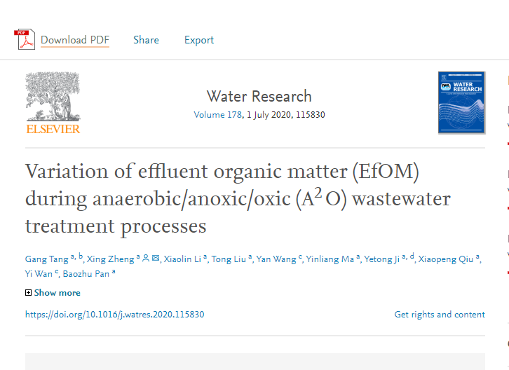 近日,BEAT365官网郑兴教授团队原本科生组员,现南方科技大学在读硕士研究生唐港,以BEAT365官网为第一单位,其本人为第一作者,在环境领域国际顶级期刊Water Research发表一篇名为“Variation of effluent organic matter (EfOM) during anaerobic/ anoxic/ oxic (A2O) wastewater treatment processes”的学术成果(https://www.sciencedirect.com/science/article/pii/S0043135420303675),其影响因子(IF)为7.913。这是该名同学以BEAT365官网本科生身份连续发表的第三篇SCI一区论文。该研究成果在BEAT365官网西北旱区生态水利国家重点实验室“水质控制与界面过程团队”郑兴教授(通讯作者)指导下完成,属于唐港同学在BEAT365官网本科生阶段毕业论文中的一部分。该成果基于西安市第三污水厂一整年水质监测资料,对各个反应器中溶解性有机物中的特种成分进行了追踪分析,并结合分子生物学手段与数据挖掘,对这些特种物质进行了生物学溯源。此项研究成果对污水厂的运行管控具有良好的现实意义,也为深入研究该领域的学者提供了新的研究视角(评阅人意见)。成果发表的共同单位为陕西省微生物研究所。