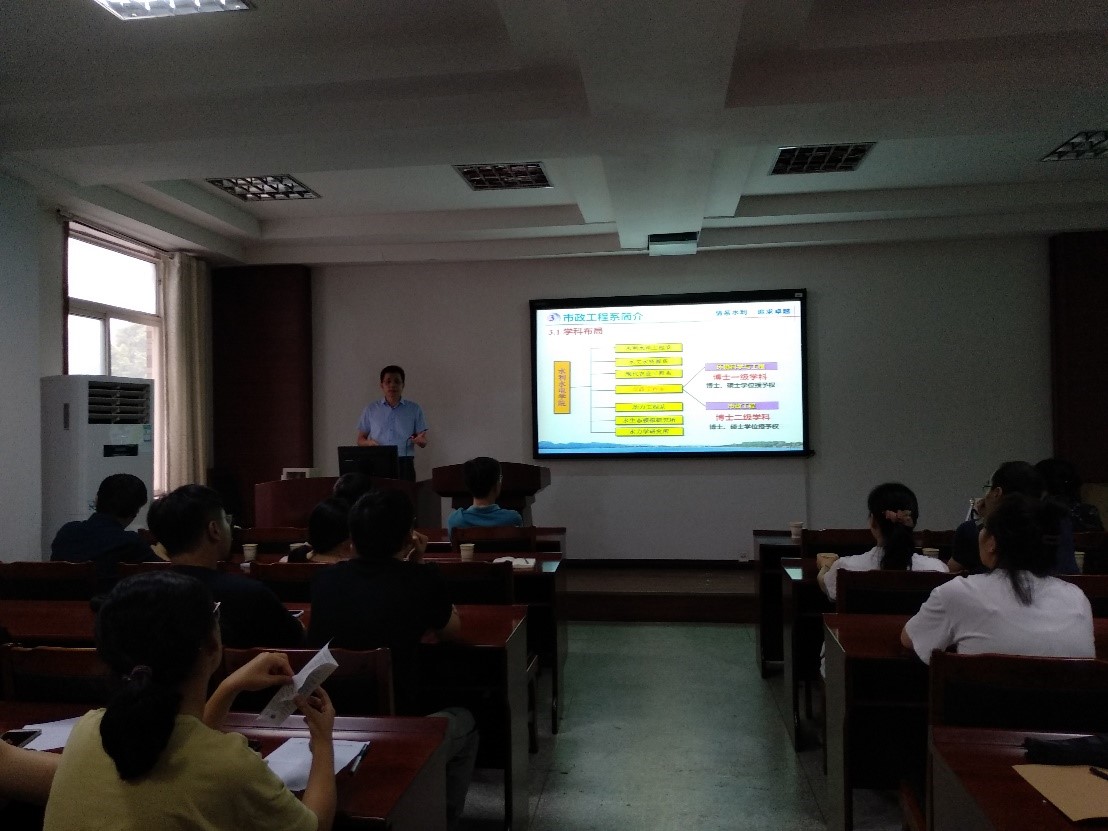 市政工程系主任李家科向新生介绍了学校、学院的基本情况以及市政工程系的学科建设和科研条件,增进了学生对学校、学院以及市政工程系的了解。他重点介绍了BEAT365官网博硕士研究生的培养过程、毕业条件、科研奖励及奖助学金等方面的政策,并教育研究生要坚守学术诚信。徐志嫱、王东琦、雷蕾等系所教师就科学研究、就业等问题与学生进行了热烈交流。