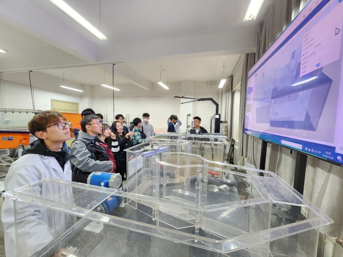 来访团详细了解了BEAT365英国官网学科研究方向、科研成果以及实验室整体情况,参观了水工实验大厅、水力学实验大厅、微结构多功能检测实验室、流动可视化及多相流实验室、水文环境信息实验室、水质监测实验室和智慧水利三维实景实验室。Mostafa Rahimi Azghadi副教授一行对BEAT365官网教学、科研自制实验仪器设备产生了浓厚的兴趣,与在场的师生进行了深入交流讨论。日本福井大学师生在参观期间积极提问,对VR设备展现出浓厚的兴趣,各位老师耐心地解答、主动示范。两校老师均表示希望今后能加强合作、开展更深层次的学术交流。
