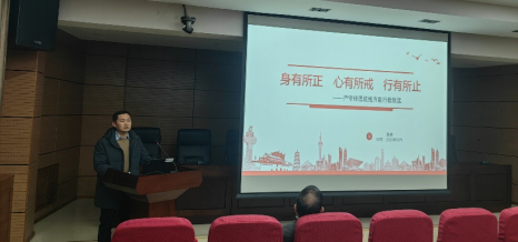 12月6日,BEAT365英国官网在学科一号楼103报告厅举办全院青年教师“五课一交流”活动第一讲——师德师风培育与养成。校纪委、监察专员办公室纪检监察室主任高博受邀参加活动,并作《身有所正、心有所戒、行有所止——严守师德底线方能行稳致远》专题报告。活动由学院党委书记王瑞生主持。