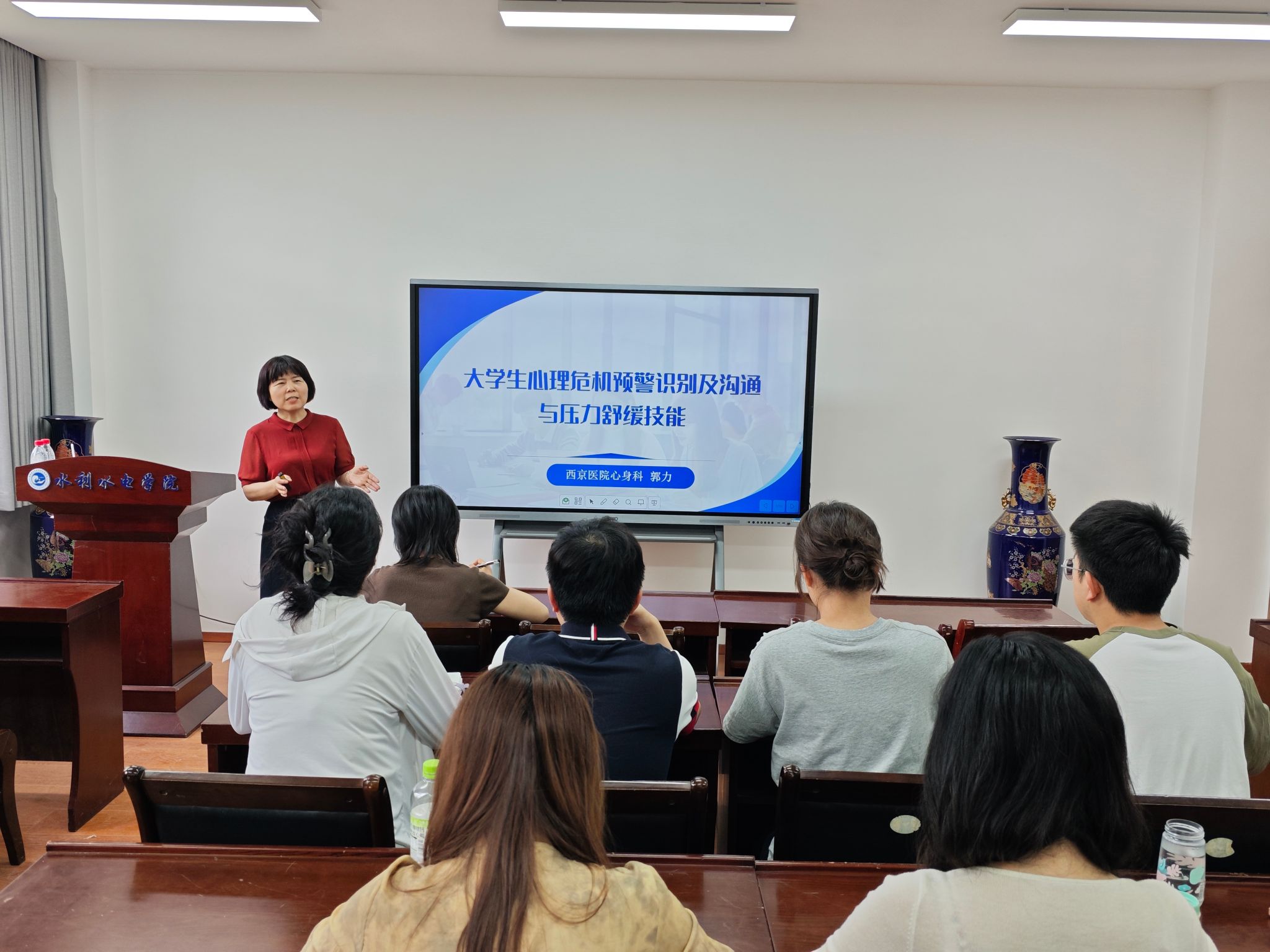 为进一步提升辅导员心理健康教育工作能力,更好地守护学生心理健康,5月15日,BEAT365官网在教四208会议室举办辅导员心理健康专题培训,特邀空军军医大学西京医院心身科副主任医师郭力来学院作心理健康专题讲座。学院全体辅导员、兄弟学院部分辅导员参加讲座。