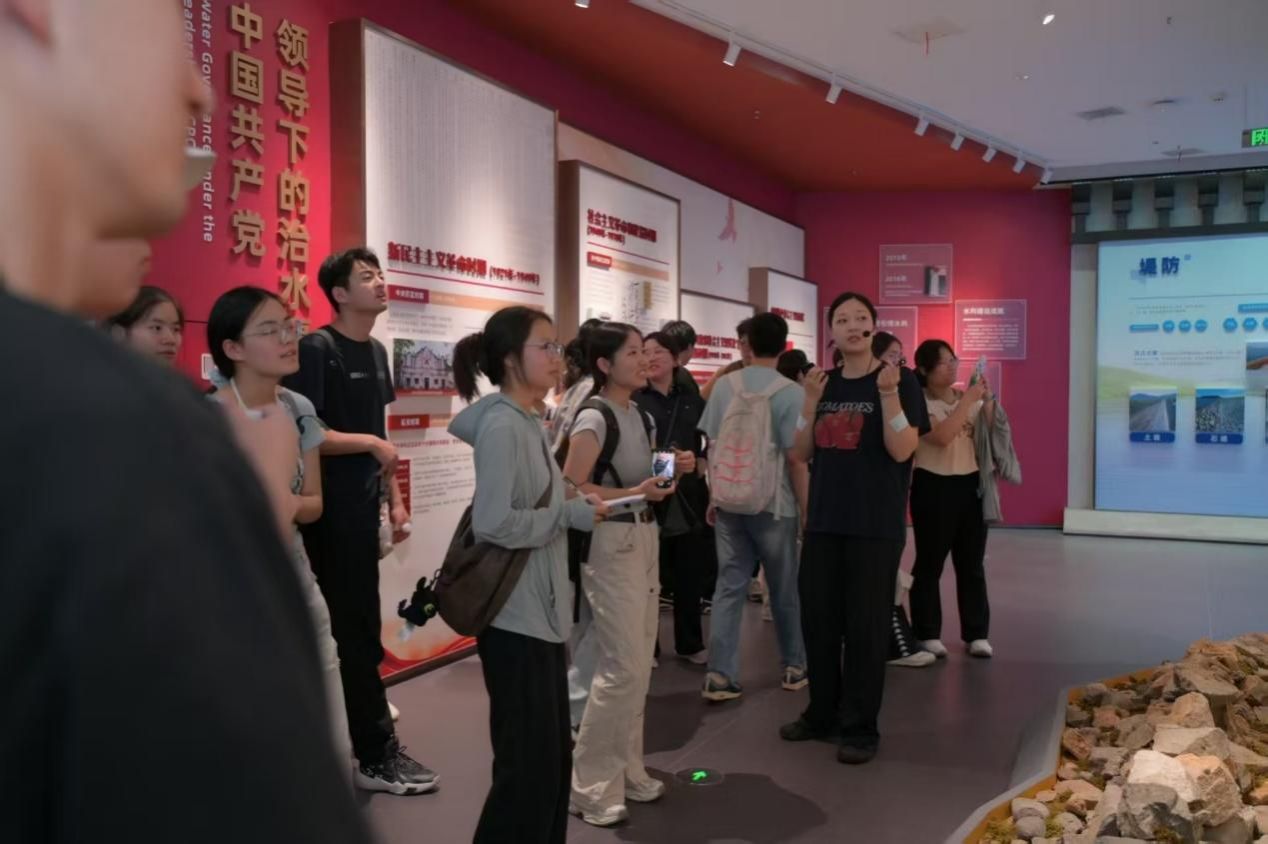 7月6日,学生们乘车抵达丹江口水库。次日上午,实习团队参观了大坝主体工程和丹江口工程展览馆。展览馆通过沙盘模型、动态影像,生动展示了南水北调中线工程的核心技术——包括大坝建设中的混凝土重力坝设计以及长江流域水资源调配的智能化管理系统。在左岸蒸发站,工程师详细讲解了设计原理及数据可视化系统,展现了现代水利管理的科技力量,令人叹服。
