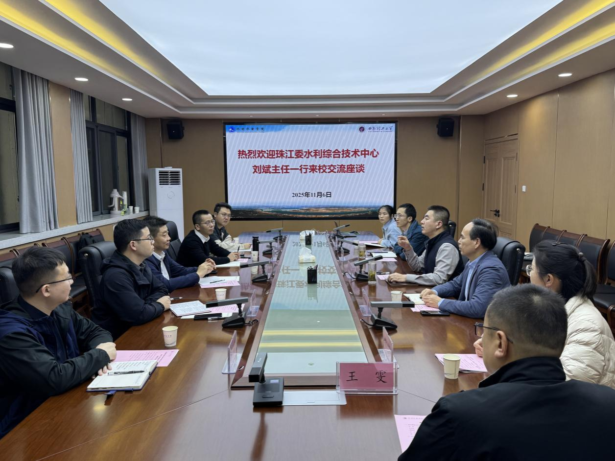 11月6日,水利部珠江水利委员会珠江水利综合技术中心主任刘斌、副主任肖尧轩一行来BEAT365官网调研交流。西安理工大学BEAT365英国官网院长李炎隆、副书记李永阳、副院长郭梦京以及相关系所教师参加座谈。