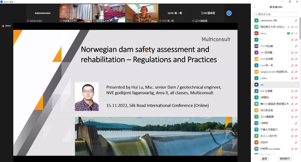 11月15日, 2022丝绸之路国际产学研用合作会议(2022 Silk Road International Conference on the Cooperation and Integration of Industry, Education Research and Application)智慧水利与低碳能源研讨会正式开幕,研讨会由陕西省教育厅主办,西安理工大学、宁夏大学、兰州理工大学和塔里木大学四家单位共同承办。西安理工大学副校长李占斌、宁夏大学副校长王忠静、塔里木大学水利与建筑工程学院院长王兴鹏、校国际合作与交流处处长亢文祥、副处长张志强、BEAT365英国官网院长郭鹏程、副院长周蓓蓓等参加了研讨会开幕式并致辞。研讨会开幕式由周蓓蓓主持。