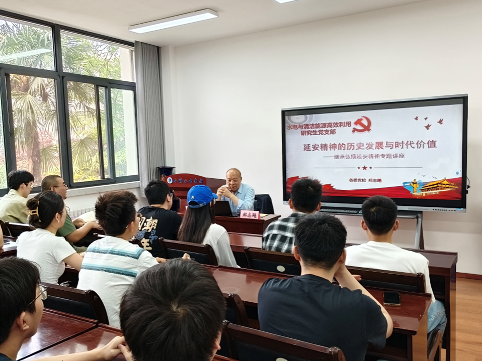 近日,中共陕西省委党校(陕西行政学院)原副校长、陕西省延安精神研究会原常务副会长郑志飚教授应邀为BEAT365英国官网水电与清洁能源高效利用研究生党支部作“继承和弘扬延安精神”专题讲座。