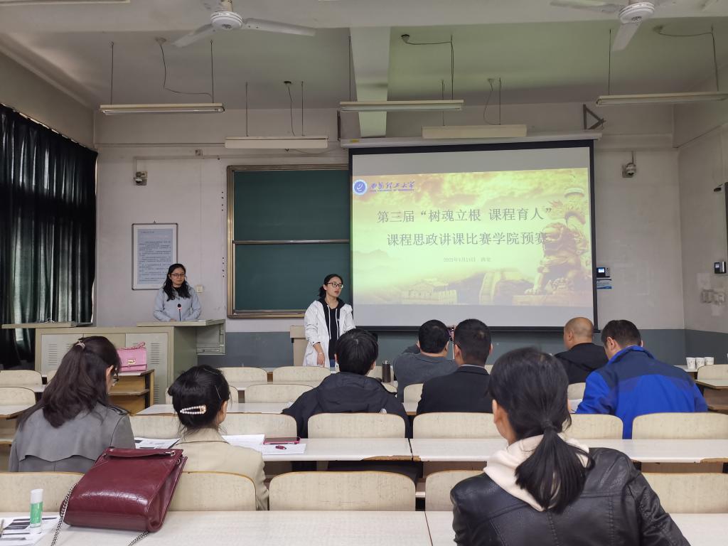 为深入贯彻全国教育大会和新时代全国高等学校本科教育工作会议精神,将“立德树人”和“教书育人”内化于心、外化于行。2021年4月14日下午2点在教6楼411教室,水利水学院组织了第三届“树魂立根 课程育人”课程思政讲课比赛学院预赛,此次预赛共有9名青年教师参赛,教学院长周蓓蓓老师主持了本次比赛,教学指导委员袁继国老师和各系所教学主任担任评委,部分师生进行了现场观摩。