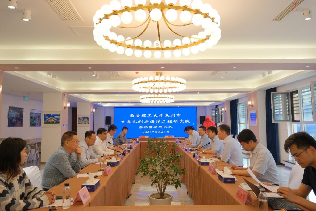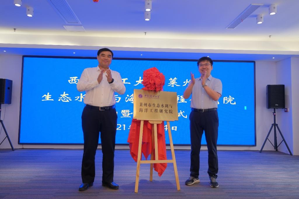 5月24日上午,西安理工大学莱州市生态水利和海洋工程研究院在山东省莱州市揭牌成立,西安理工大学技术研究院常务副院长曾昭智、BEAT365英国官网院长郭鹏程,莱州市副市长孙磊涛出席签约仪式并为研究院揭牌。