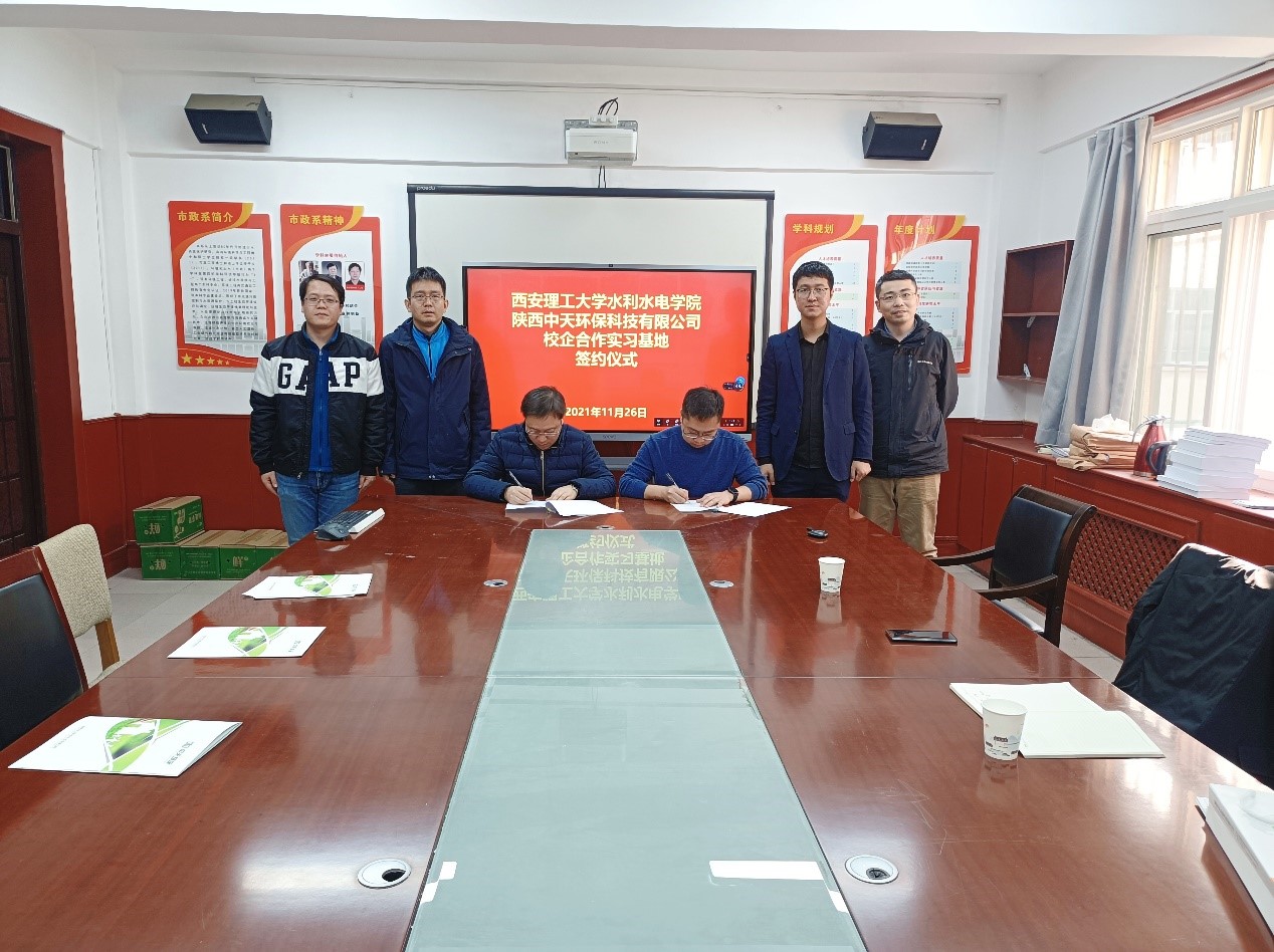 2021年11月26日下午,BEAT365英国官网与陕西中天环保科技有限公司交流合作会议暨实习基地签约仪式在市政与环境工程系会议室举行。BEAT365英国官网副院长吴罗长、市政系副主任王东琦、张耀中,以及中天环保公司总经理李岩等出席了本次会议。