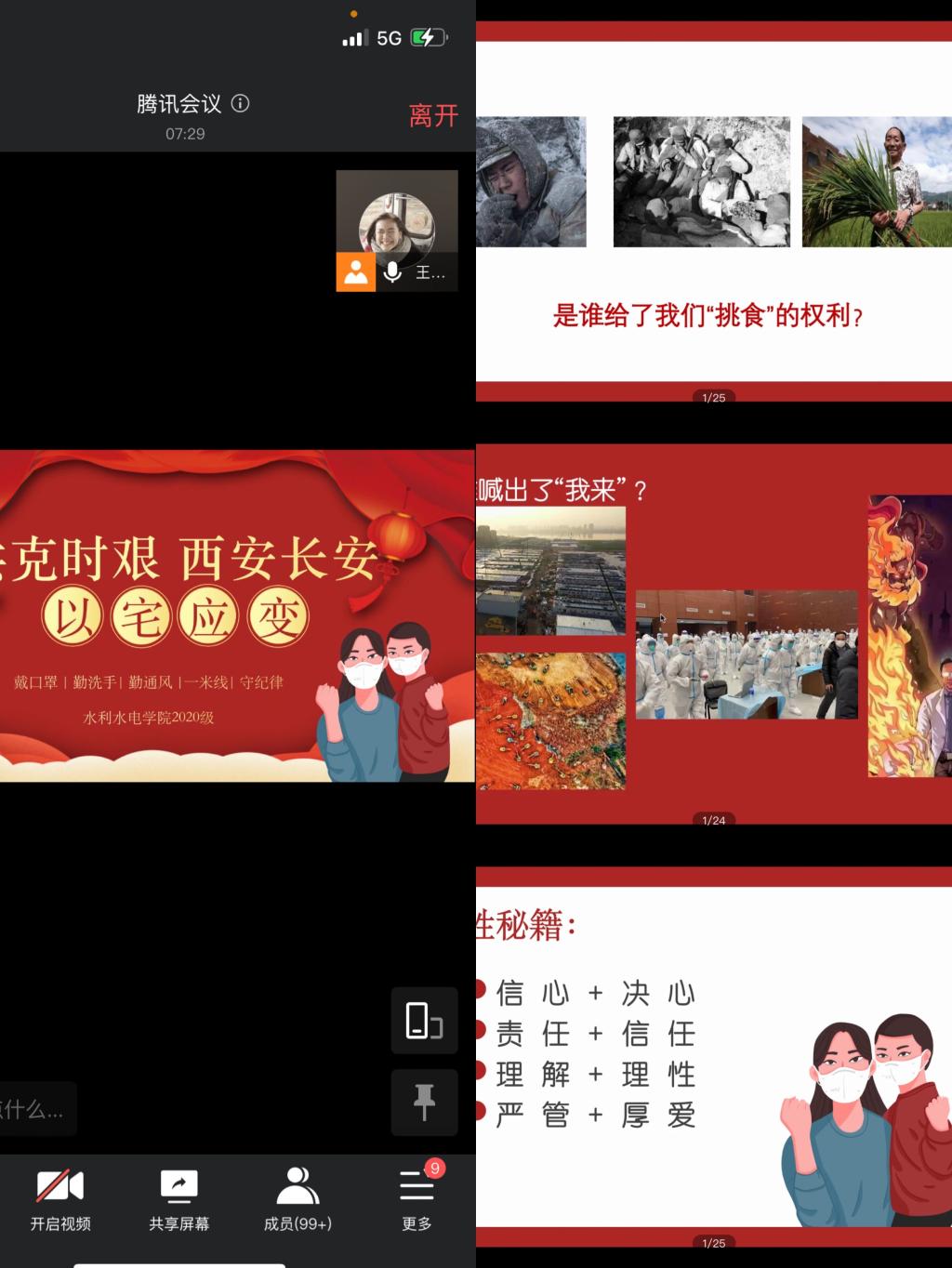 疫情就是命令,防控就是责任。为进一步夯实学生疫情防控教育工作,使学生在思想上认同、行动上践行“戮力同心 共克时艰”的观念。1月4日BEAT365英国官网在腾讯会议上开展了“共克时艰 西安长安 以宅应变”主题教育活动,2020级全体本科生和辅导员参加了本次活动,活动由辅导员王竞婕主持。