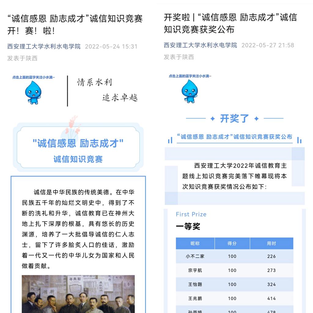 为认真贯彻落实习近平总书记关于教育的重要论述,全面贯彻党的教育方针,紧紧围绕立德树人根本任务,切实提升学生的诚信品质、自律意识和社会责任感,524日—28日学院组织开展“诚信感恩,励志成才”线上诚信知识竞赛。