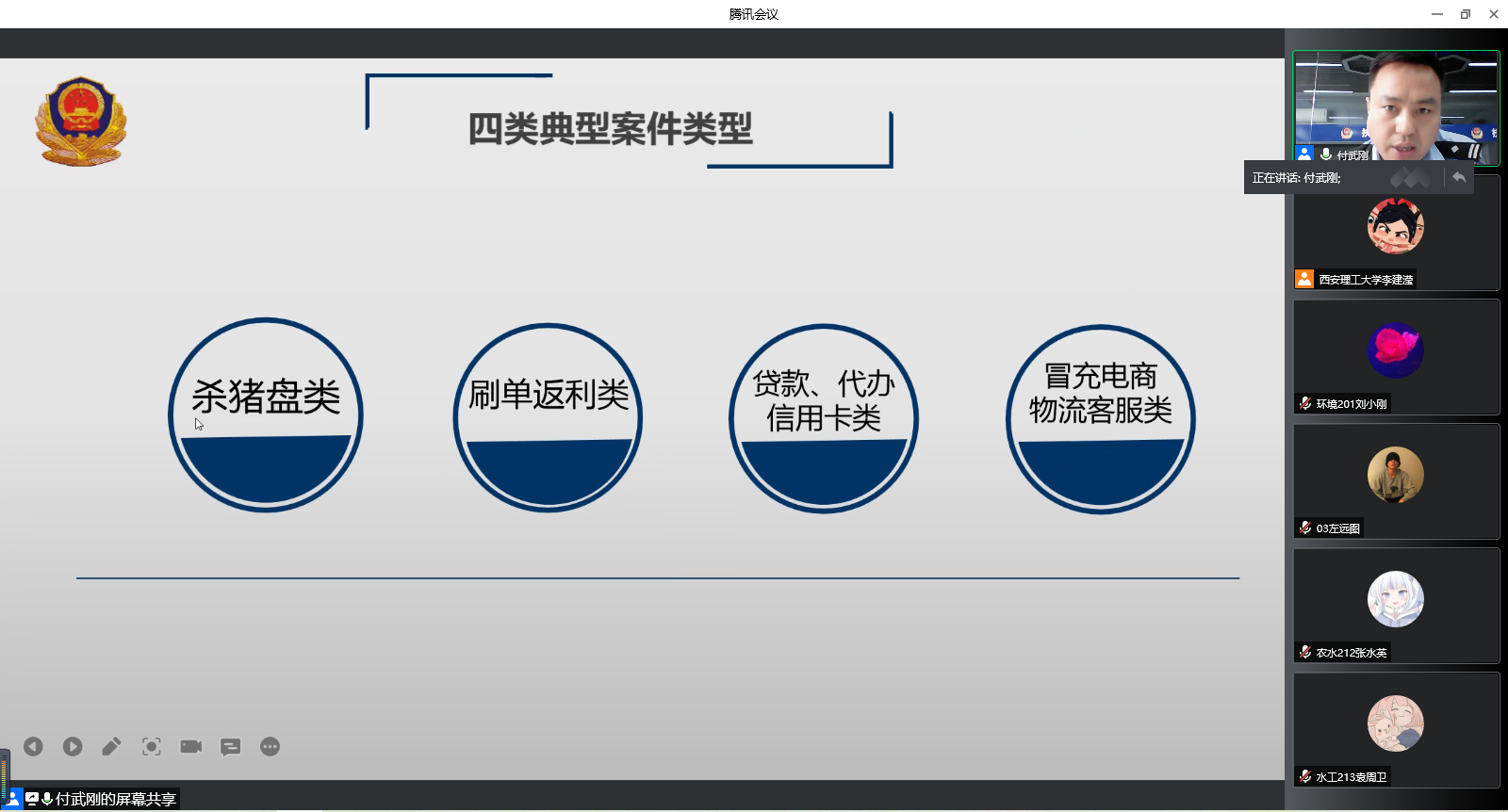 为增强学院学生对各类诈骗方式的鉴别能力和自我安全防范意识,防止奖、助学金被骗事件的发生。5月27日,BEAT365英国官网邀请宝鸡市扶风县刑事侦查大队中队长付武刚警官,通过线上腾讯会议的方式开展“诚信感恩 励志成才”防诈骗安全教育主题讲座。