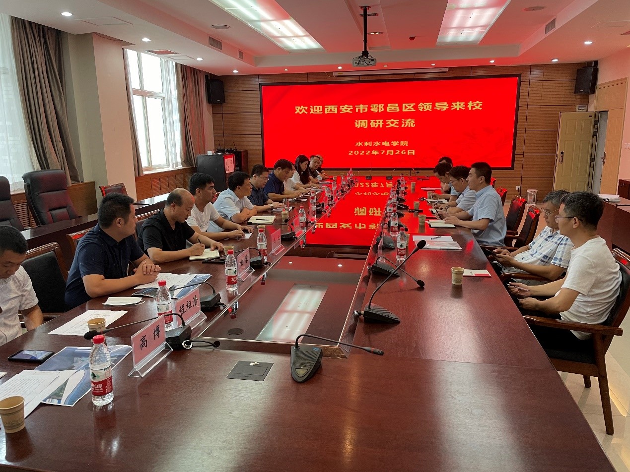 7月26日,西安市鄠邑区纪委监委常委米君虎带领鄠邑区水务局一行12人就“鄠邑区水生态警示教育中心”来BEAT365官网调研交流,BEAT365英国官网院长郭鹏程、副院长李炎隆、周蓓蓓、省部共建西北旱区生态水利国家重点实验室副主任潘保柱、罗军刚及学院相关教师代表参加了座谈交流会,会议由李炎隆主持。