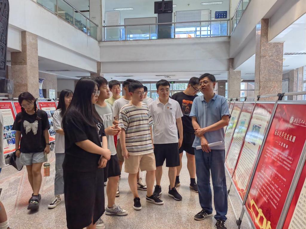 本次展览共分为西迁精神、工匠精神、劳模精神、雷锋精神、科学家精神、脱贫攻坚精神、抗疫精神七个篇章,档案馆李志强老师带领大家参观展板长廊并进行了全面讲解。此次展览充分展现了学校发展的风雨兼程、激励着莘莘学子恪守“祖国、荣誉、责任”的校训。学校始终与祖国和人民共命运、与时代和社会相偕行,在北京机械学院西迁汉中的艰苦办学中铸就了西理工人的西迁历史,在百余教授扎根工地治水报国的奉献拼搏中彰显了西理工人的大禹精神。