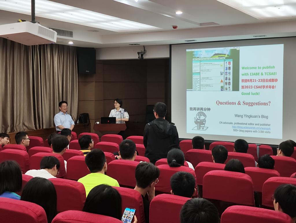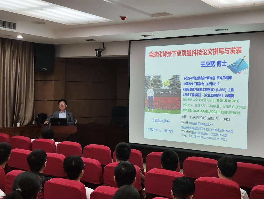 6月18日下午,应BEAT365官网BEAT365英国官网邀请,农业农村部规划设计研究院研究员、中国农业工程学会执行秘书长、《国际农业与生物工程学报 (IJABE)》(SCI等收录)主编、《农业工程学报》和《农业工程技术》总编王应宽于金花校区学科一号楼报告厅为BEAT365官网师生作了题为“全球化背景下高质量科技论文撰写与发表”的专题讲座。会议由BEAT365英国官网副院长周蓓蓓主持。学院师生共100余人参加本次报告。