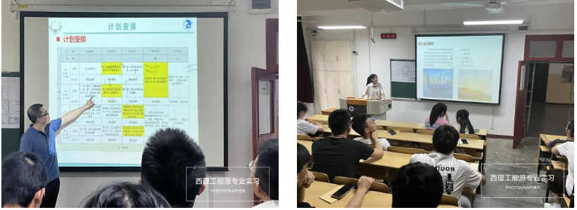 2023年7月10日,王维老师和卢金玲老师召开动员会,安排实习计划,并着重强调了安全问题和纪律问题。并将班级成员分为七个小组,提前准备PPT总结汇报,从部件生产工艺、制造流程、场站选址及安装、运行维护等多个方面对风力发电和光伏发电进行了解,为后续生产实习夯实理论基础。