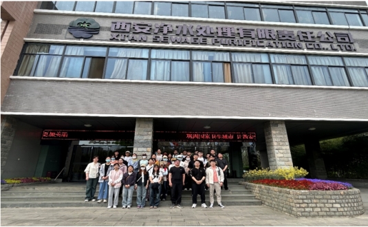 在此期间,水厂负责人带领市政系师生首先来到西安水务再生水展馆进行参观。展馆通过一系列艺术视频、图文展板和实物模型等视觉载体,并借助智能化触控多媒体、互动实验装置,生动形象地展示了西安市近年来在水务一体化、再生水利用和绿色高质量发展等方面取得的成绩,激发了学生节约水资源、保护水环境的意识。同学们了解到,随着再生水管网不断延伸,再生水利用率不断扩大,已经成为“城市第二水源”,每天约有4万吨的再生水注入护城河,有效改善了河道及沿岸的生态环境。