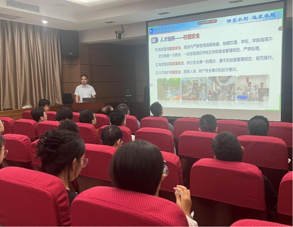 王瑞生书记首先代表学院对2024级533名研究生新生表示祝贺和欢迎。随后向同学们详细介绍了学院的历史沿革、师资队伍、专业设置、平台建设、科学研究、校企合作等内容。他勉励同学们要牢记“祖国荣誉责任”校训,珍惜时间,勤奋学习、勇于创新,追求卓越。